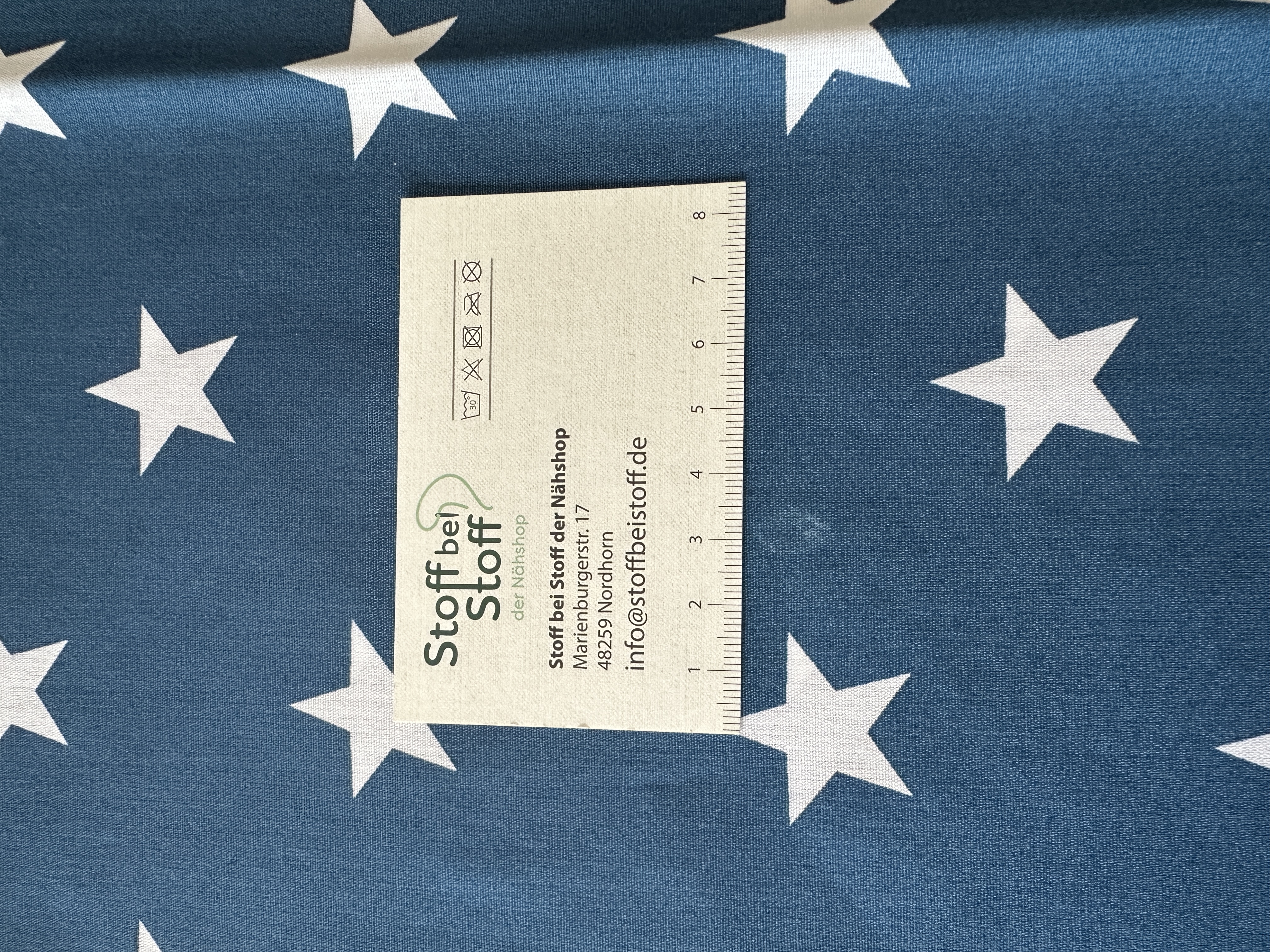 Diese klassische Baumwolle ist mit großen Sternen von etwa 3cm Durchmesser bedruckt.
