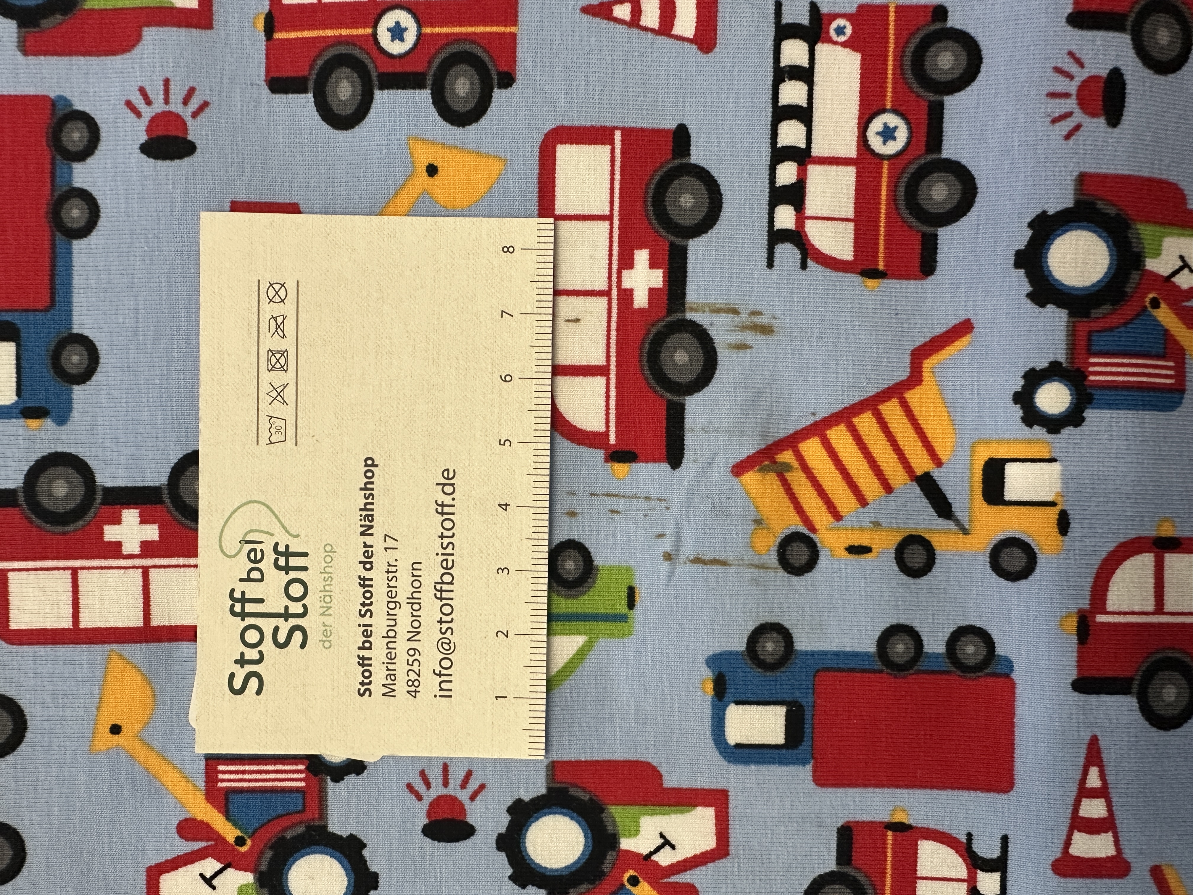 50% Rabatt B-Ware 1 Meter Baumwoll-Jersey "Baufahrzeuge und Notfalleinsatz" SBS10197