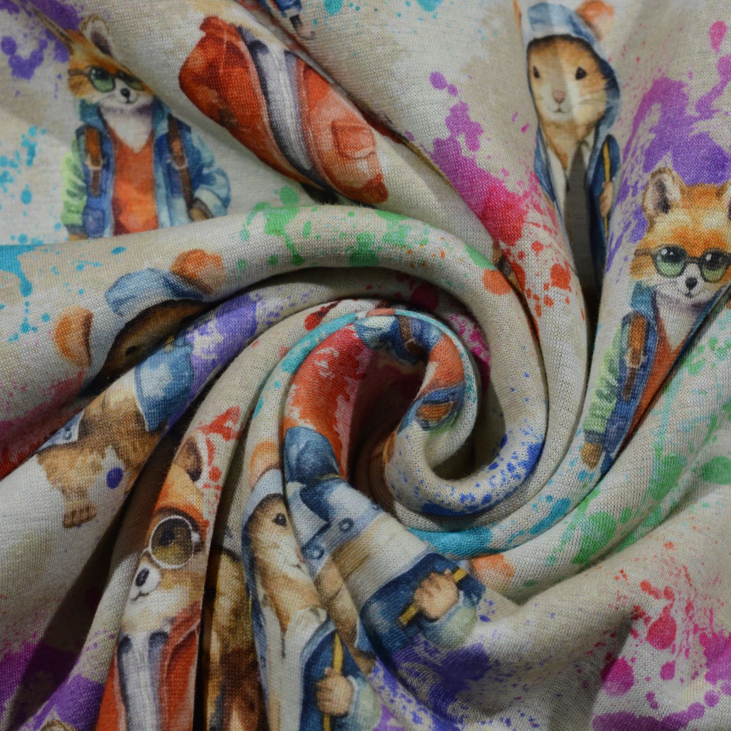 Dieser Alpenfleece ist ein echtes Highlight für kuschelige Kinder- und Jugendmode! Die frechen Tier-Charaktere mit Hoodies, Jacken und coolen Accessoires treffen auf eine moderne Splash-Optik – perfekt für trendige Hoodies, Jacken, Jogginghosen, Mützen, Loops und kuschelige Decken.