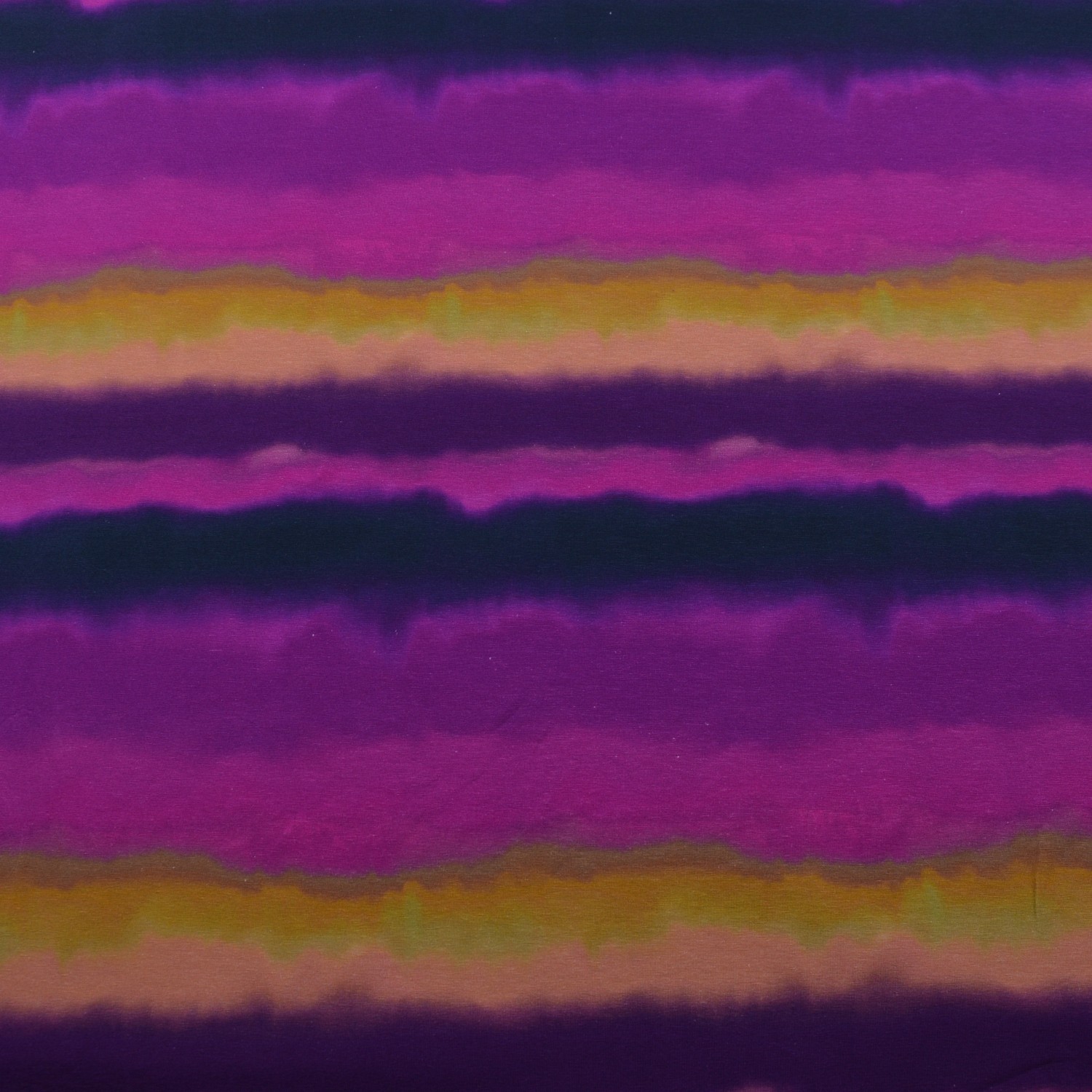Der Jersey „Alessandra“ besticht durch sein intensives Farbspiel in Violett-, Pink- und Goldtönen. Der weiche Baumwoll-Elasthan-Mix sorgt für hohen Tragekomfort, ist atmungsaktiv und angenehm auf der Haut. Durch den dehnbaren Griff eignet sich dieser Stoff hervorragend für Shirts, Kleider, Röcke und bequeme Freizeitmode.