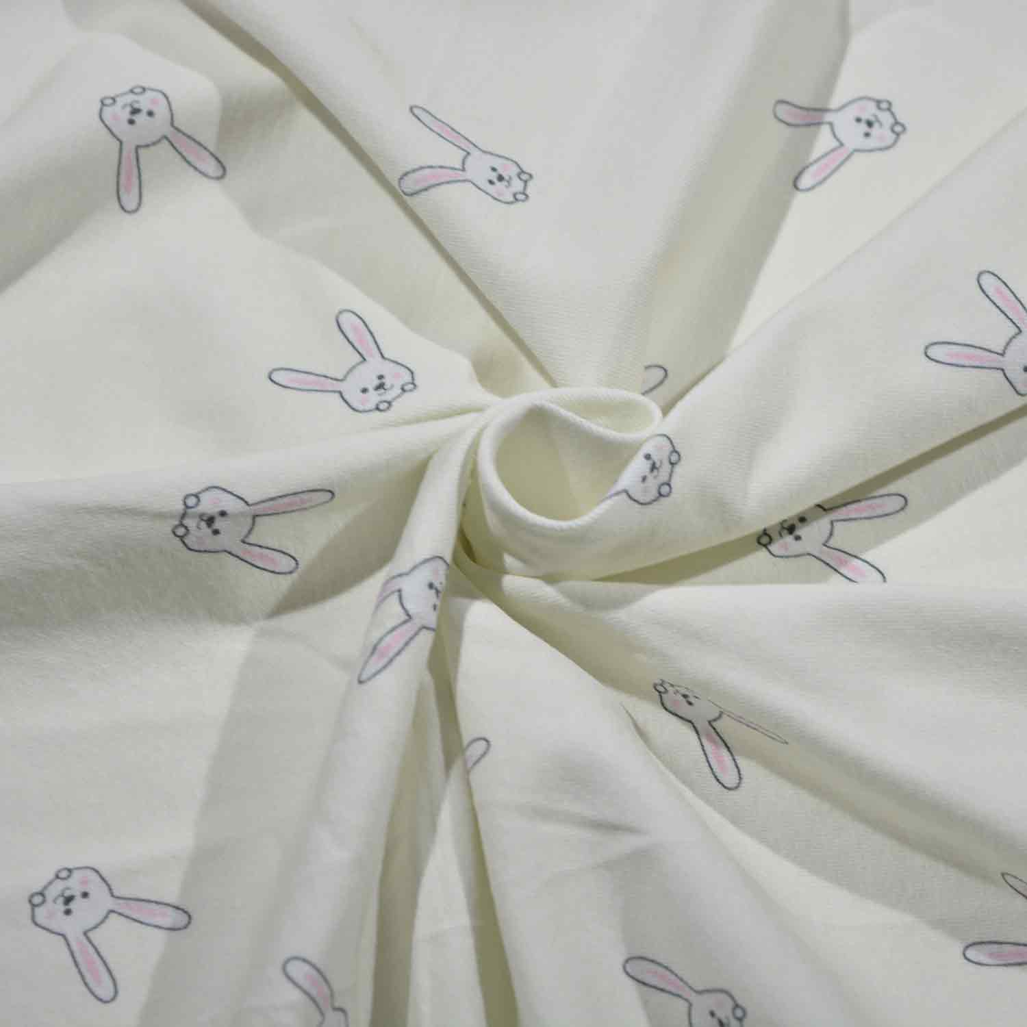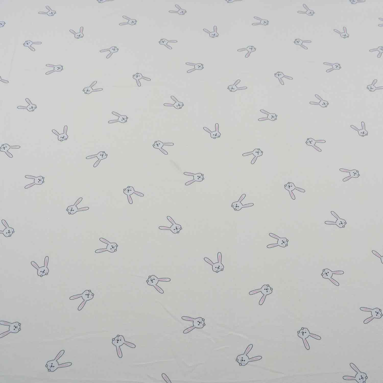 Entzückende Baumwoll-Jersey-Serie Dina aus dem Hause Glünz. Dieser kuschelige Jersey mit hellem, altrosa Untergrund ist mit kleinen, weißen Häschen mit langen Ohren und niedlichen Pfötchen bedruckt. Ein süßer Stoff mit fröhlicher Ausstrahlung.