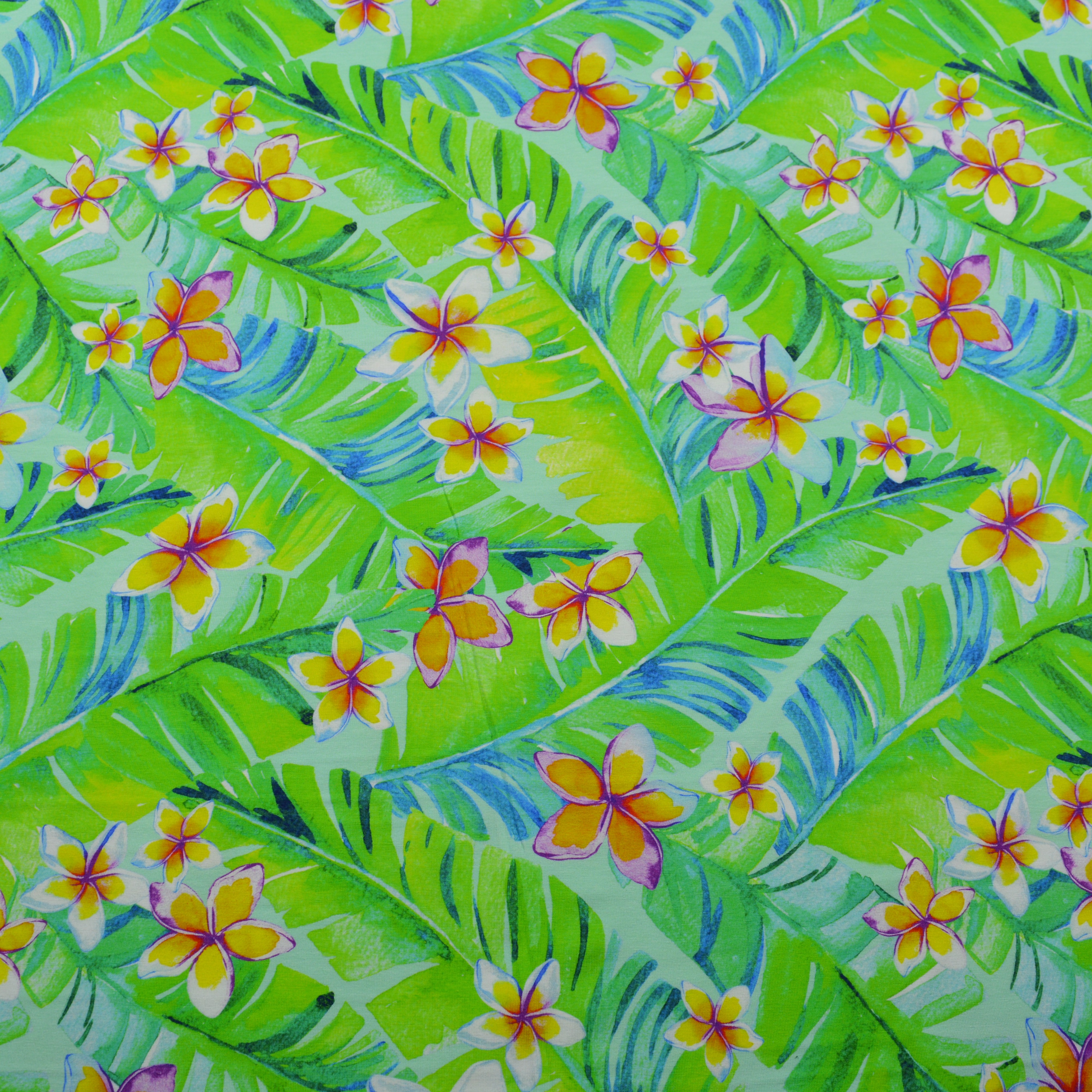 Dieser hochwertige Baumwolljersey begeistert mit seinem farbenfrohen, floralen Design auf frischem grünem Untergrund. Die detailreich illustrierten Blüten verleihen dem Stoff eine lebendige, sommerliche Ausstrahlung und machen ihn zu einem echten Hingucker für kreative Nähprojekte.