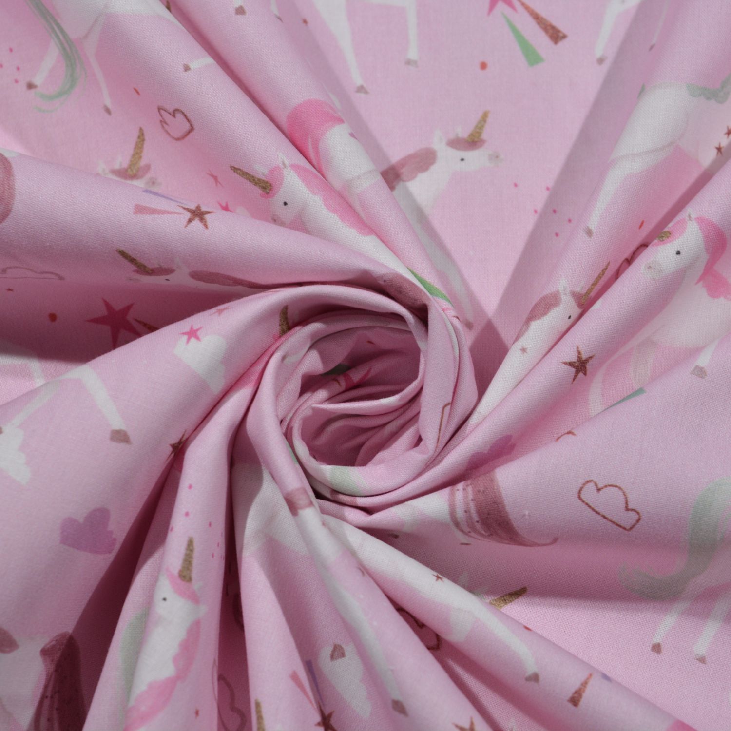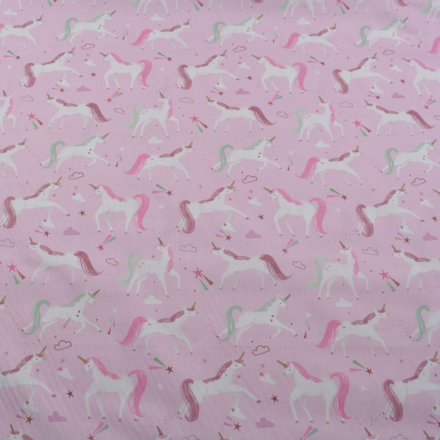 Baumwollstoff „Einhornzauber“ – Einhörner und Sterne auf Rosa