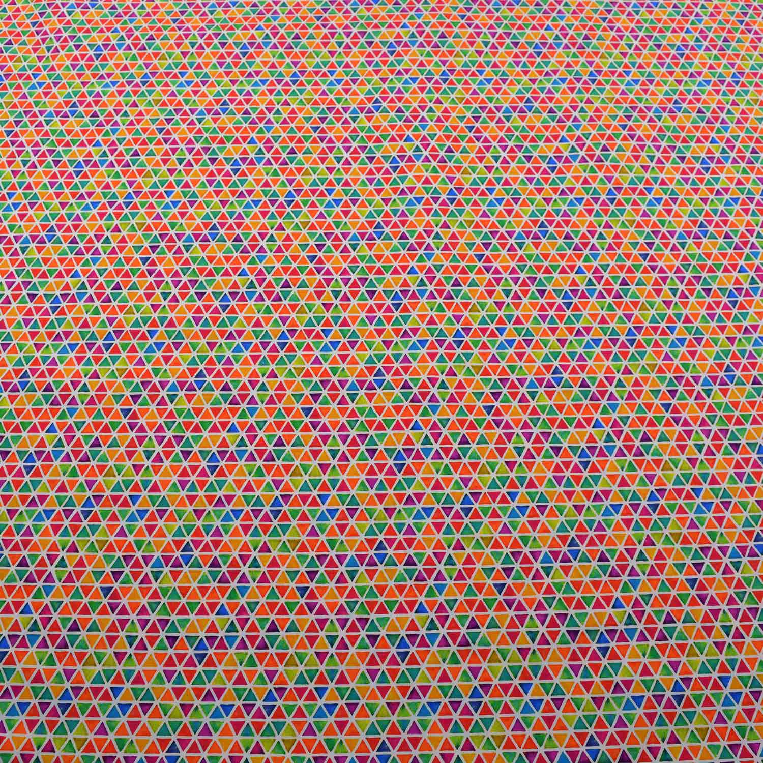 Die Dreiecke sind in leuchtenden Farben im ganzen Spektrum des Regenbogens bedruckt und ergeben ein wunderbar farbenfrohes, aber doch auch ordentliches Bild ab.
