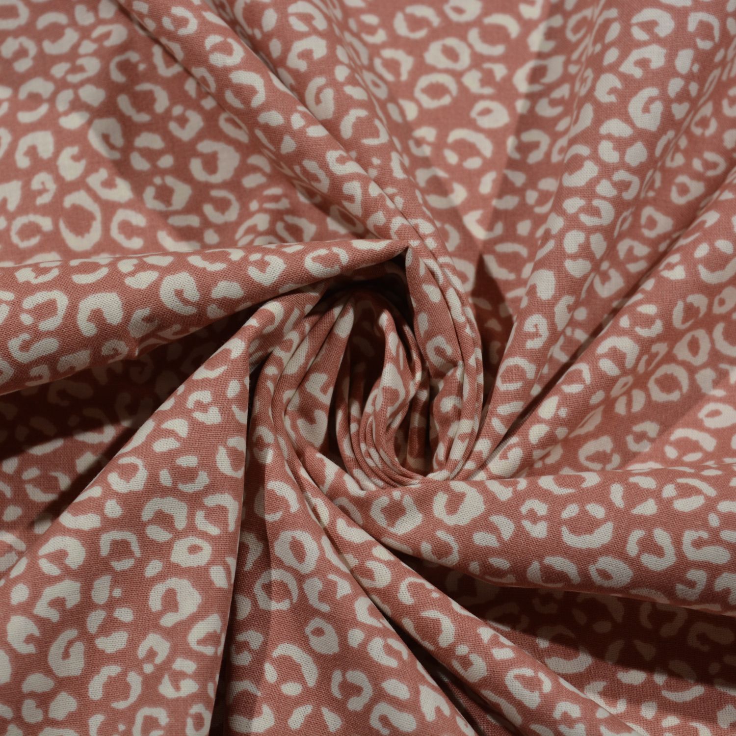 Dieser hochwertige Baumwollstoff überzeugt mit einem feinen, modernen Leo-Muster in kleiner, gleichmäßiger Streuung. Der warme Altrosa-Grundton wird durch das dezente, cremefarbene Muster ergänzt und verleiht dem Stoff eine stilvolle, trendige Optik.