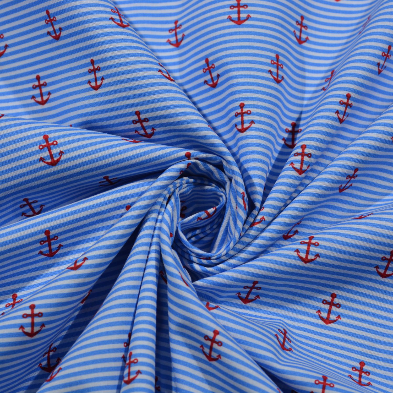 Die leichte, glatte Baumwollqualität ist angenehm im Griff, atmungsaktiv und vielseitig einsetzbar. Ideal für Bekleidung, Kinderprojekte sowie maritime Wohn- und Dekoideen.