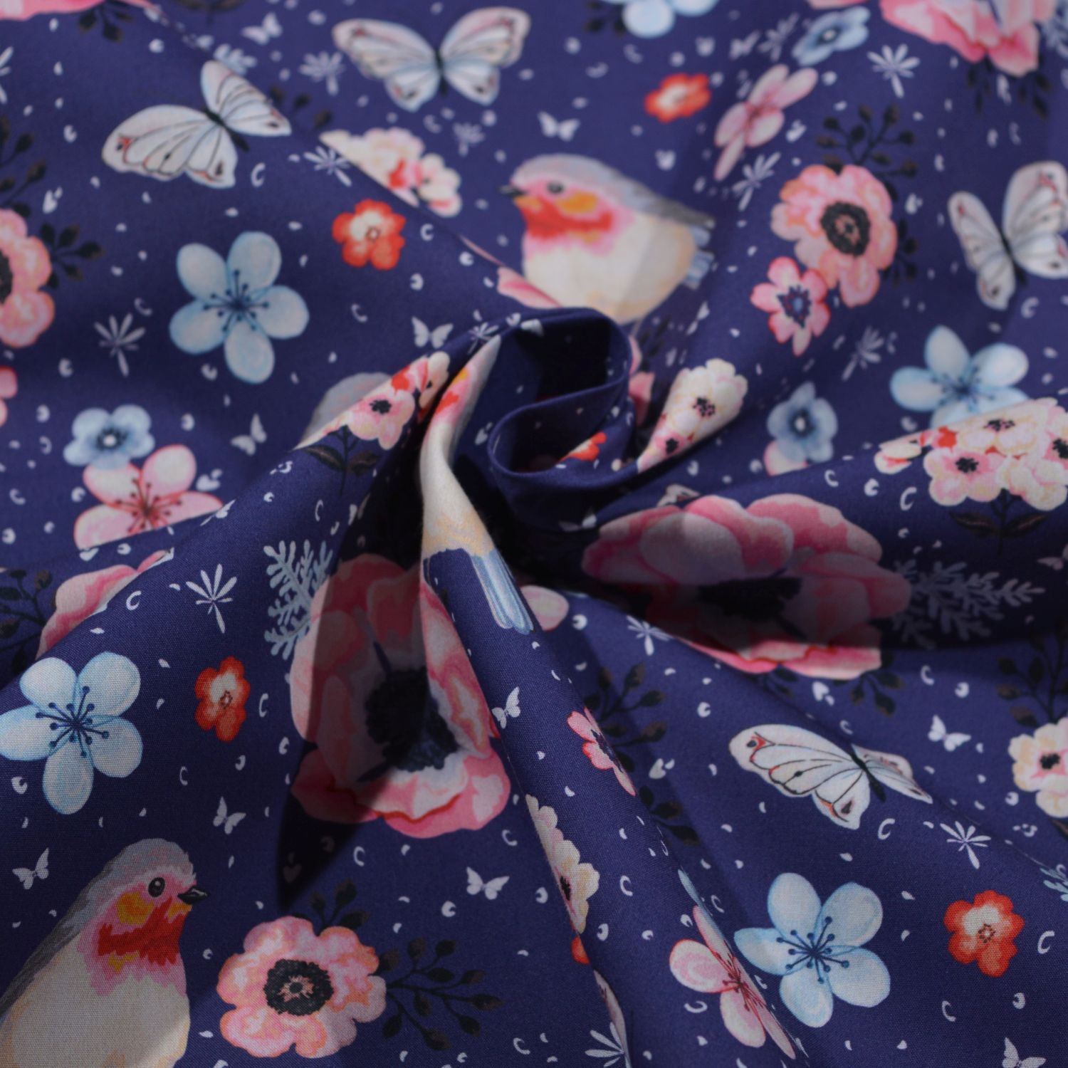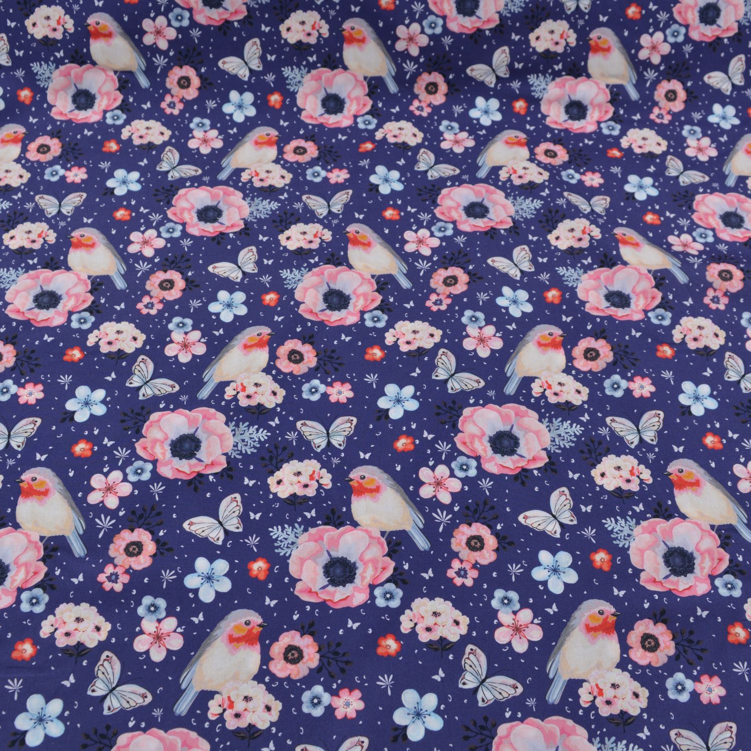 Willkommen in der verzauberten Welt der Baumwollwebware mit einem rosafarbenen Hintergrund und zauberhaften Rotkehlchen, Blüten, Schmetterlingen und Blumen! Dieser hochwertige Stoff entführt Sie in eine traumhafte Umgebung, in der die Natur in voller Blüte steht und die Schönheit des Lebens zum Ausdruck kommt.Der rosafarbene Hintergrund verleiht dem Stoff eine beruhigende und gleichzeitig erfrischende Atmosphäre, während die leuchtenden Farben der Rotkehlchen, Blüten, Schmetterlinge und Blumen mit einem blauen Touch eine romantische und verspielte Note setzen.Die Baumwollwebware ist nicht nur optisch ansprechend, sondern auch angenehm im Griff. Sie eignet sich perfekt für die Herstellung von Kleidung, Heimtextilien, Accessoires und vielen anderen Nähprojekten. Mit diesem Stoff können Sie einzigartige und liebevolle Kreationen gestalten, die die Schönheit der Natur und die Zerbrechlichkeit des Lebens zum Ausdruck bringen.Lassen Sie sich von der Baumwollwebware in blau mit den zauberhaften Naturmotiven verzaubern und kreieren Sie einzigartige Nähprojekte, die die Schönheit der Natur einfangen. Egal ob für Kleidung, Dekorationen oder Geschenke - dieser Stoff wird Ihre Kreationen mit Romantik und verspielter Eleganz bereichern. Bringen Sie die Schönheit der Natur in Ihre Nähkreationen und lassen Sie Ihre Projekte erblühen!