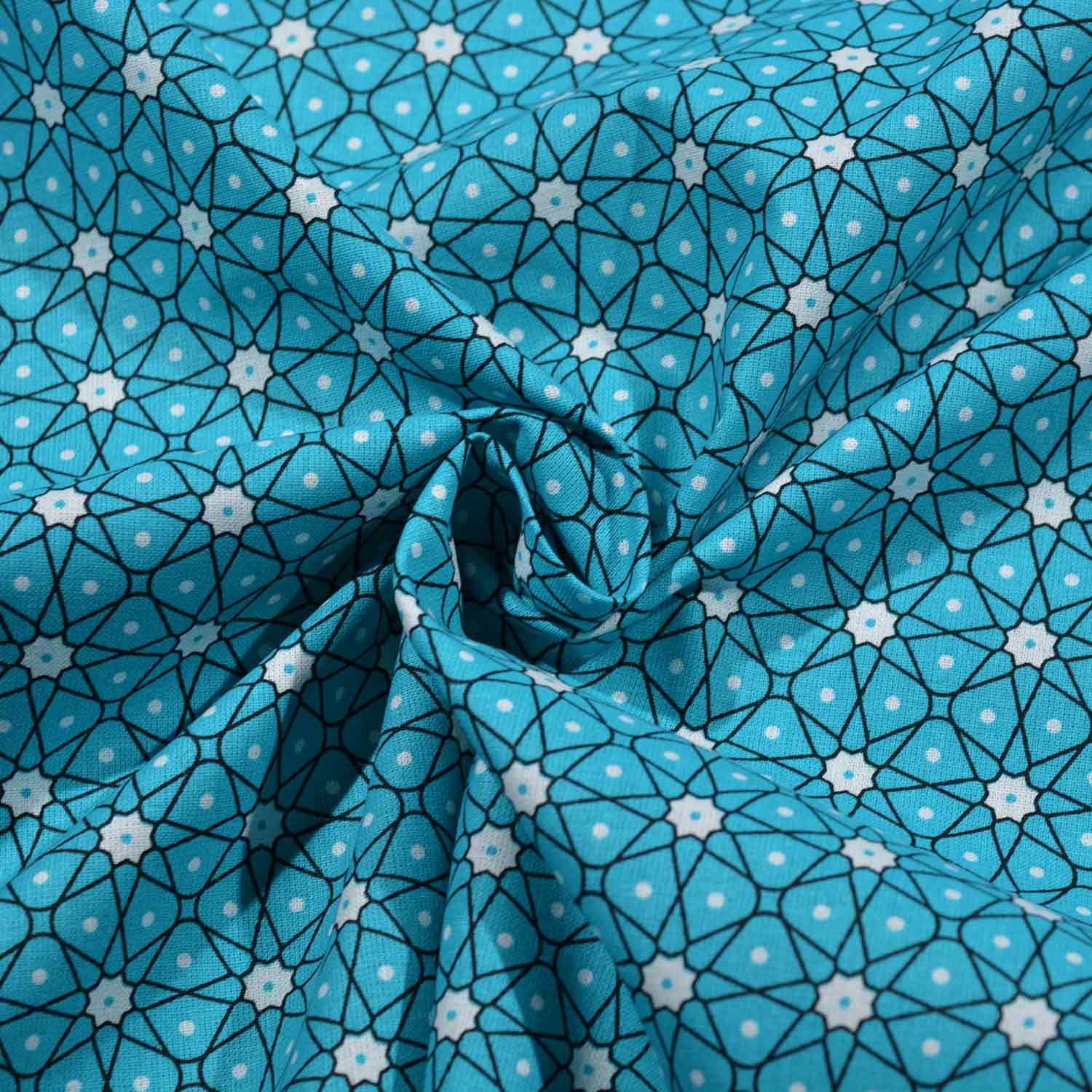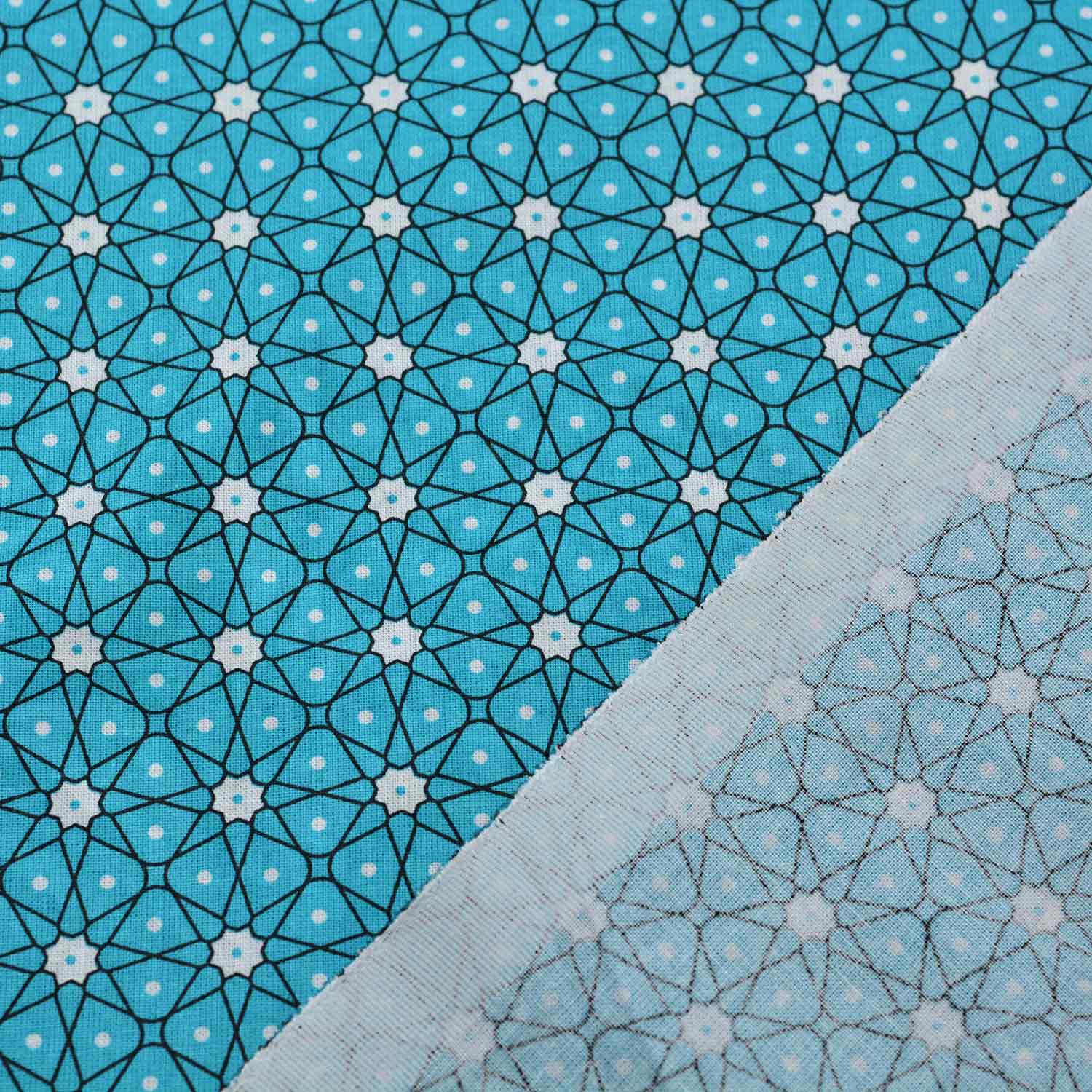 Zauberhafte Baumwoll-Serie mit grafischem Dessin. Auf dem schwarzen Untergrund ist ein weißes Linienmuster aufgebracht, das von weißen Blumen oder Sternen ausgeht und ein Muster erzeugt, dass eben an Blumen oder Sterne erinnert. Je nachdem, wie man das interpretiert. Ein interessantes, regelmäßiges Dessin, das sich toll für Patchwork-Arbeiten und Deko-Ideen eignet, aber auch für Kleidung geeignet ist.