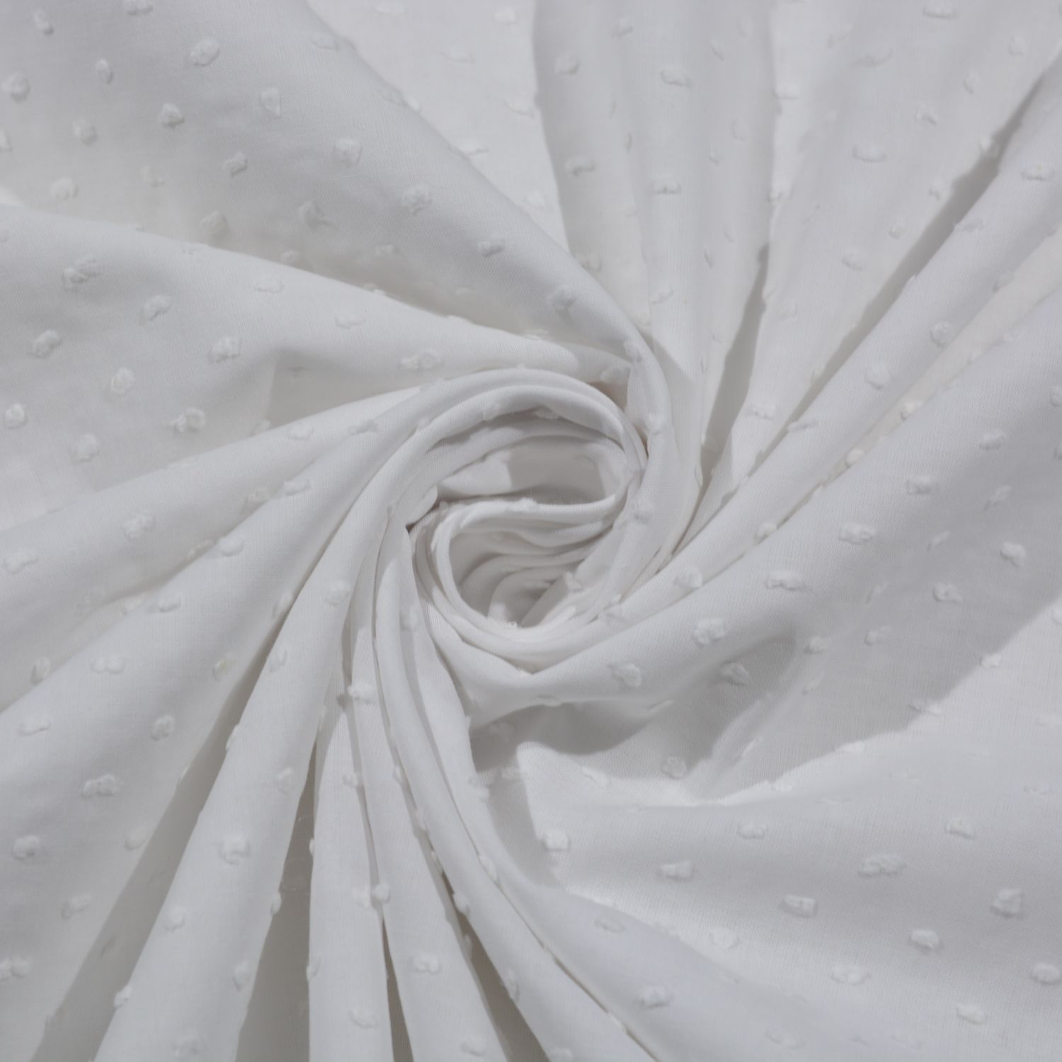 Das Design ist bewusst minimalistisch gehalten: Ein klares, reines Weiß bildet die Grundlage und wird durch eine feine Dobby-Struktur mit kleinen, gleichmäßig verteilten Punkten ergänzt. Diese dezente Struktur sorgt für eine edle Optik und eine interessante Haptik, ohne aufdringlich zu wirken – ideal für zeitlose und vielseitige Nähprojekte.