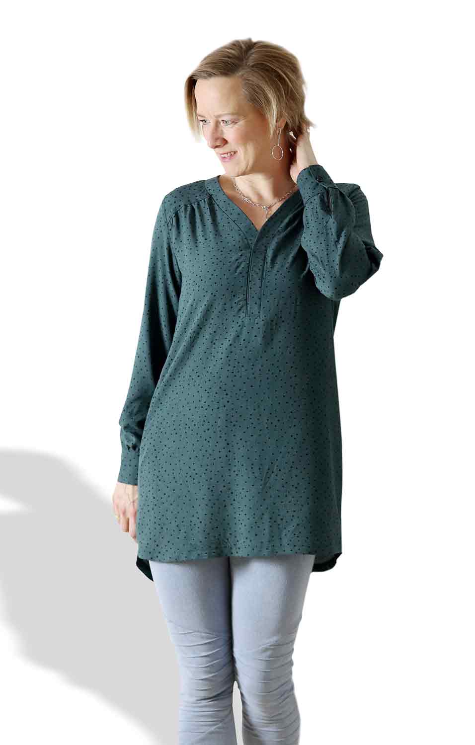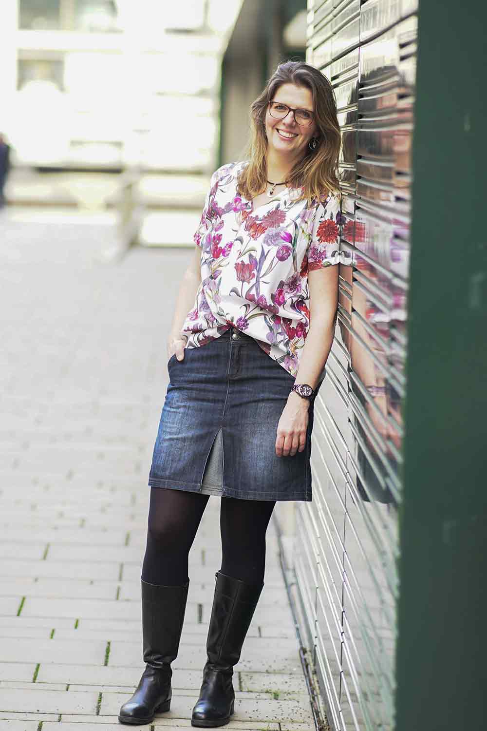 Je nach Stoffauswahl kannst du Cleo aber auch ganz lässig mit Leggings kombinieren.