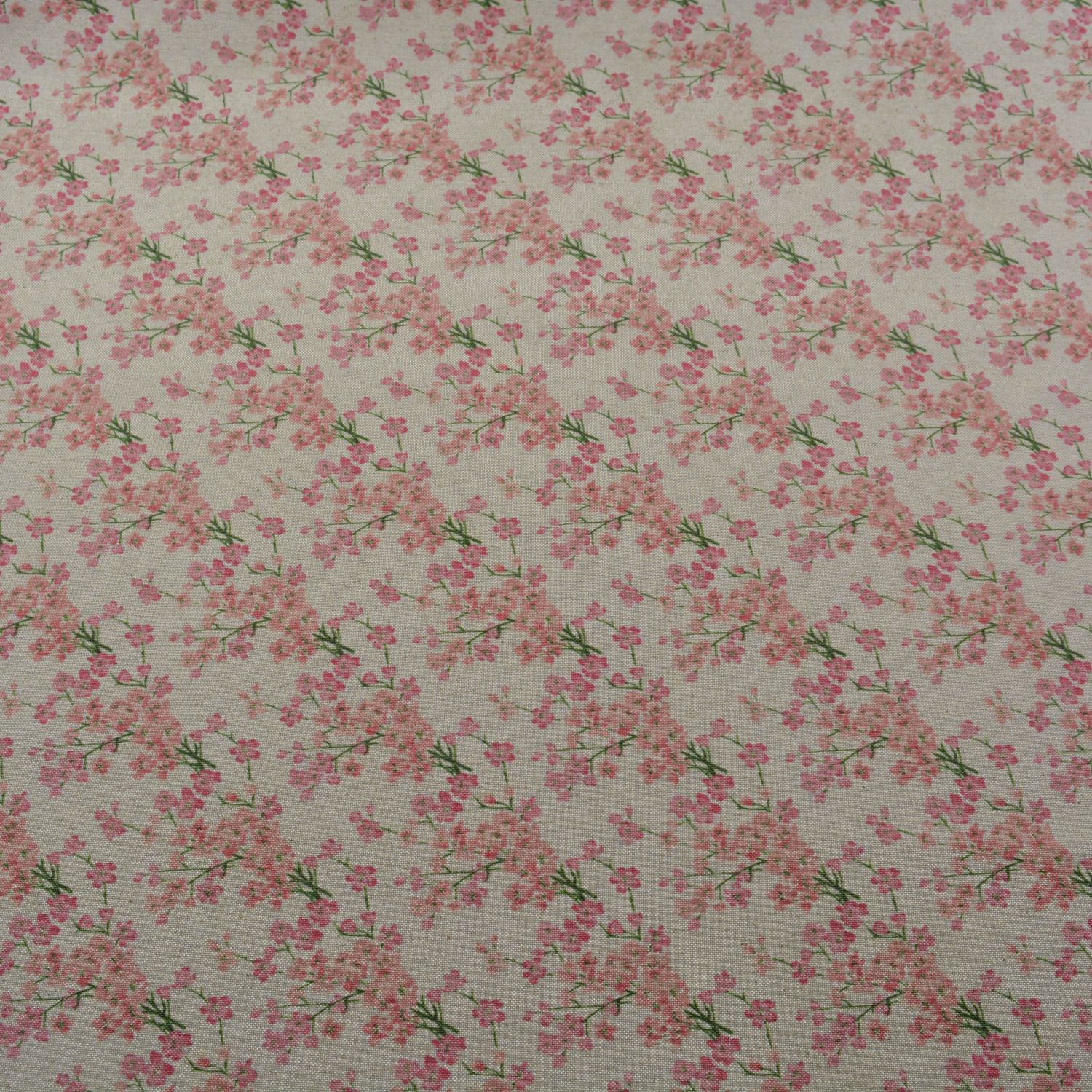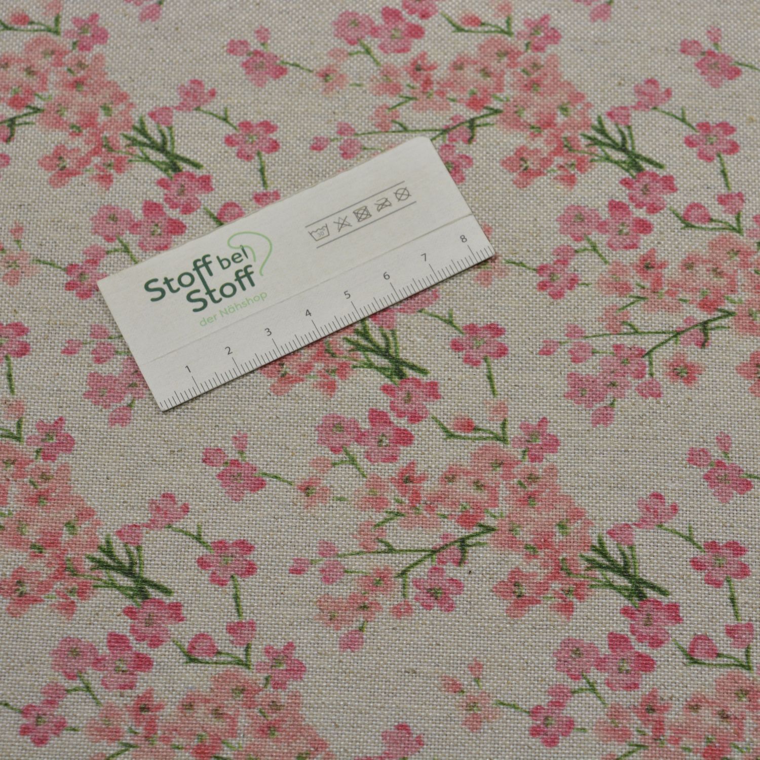 Dekostoff „Blütenzweig Rosé“ – Zarter Leinenoptik Stoff