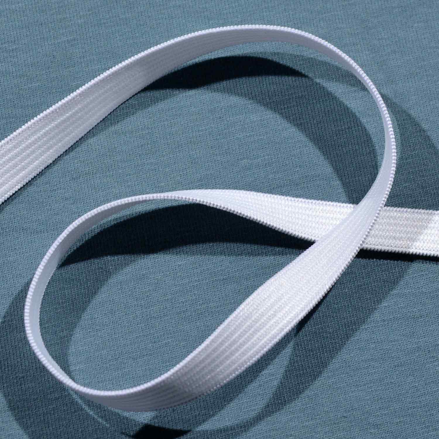 Klassische, weiche, strapazierfähige Gummilitze zum Einziehen in Bündchen und ähnliche Verwendungszwecke.