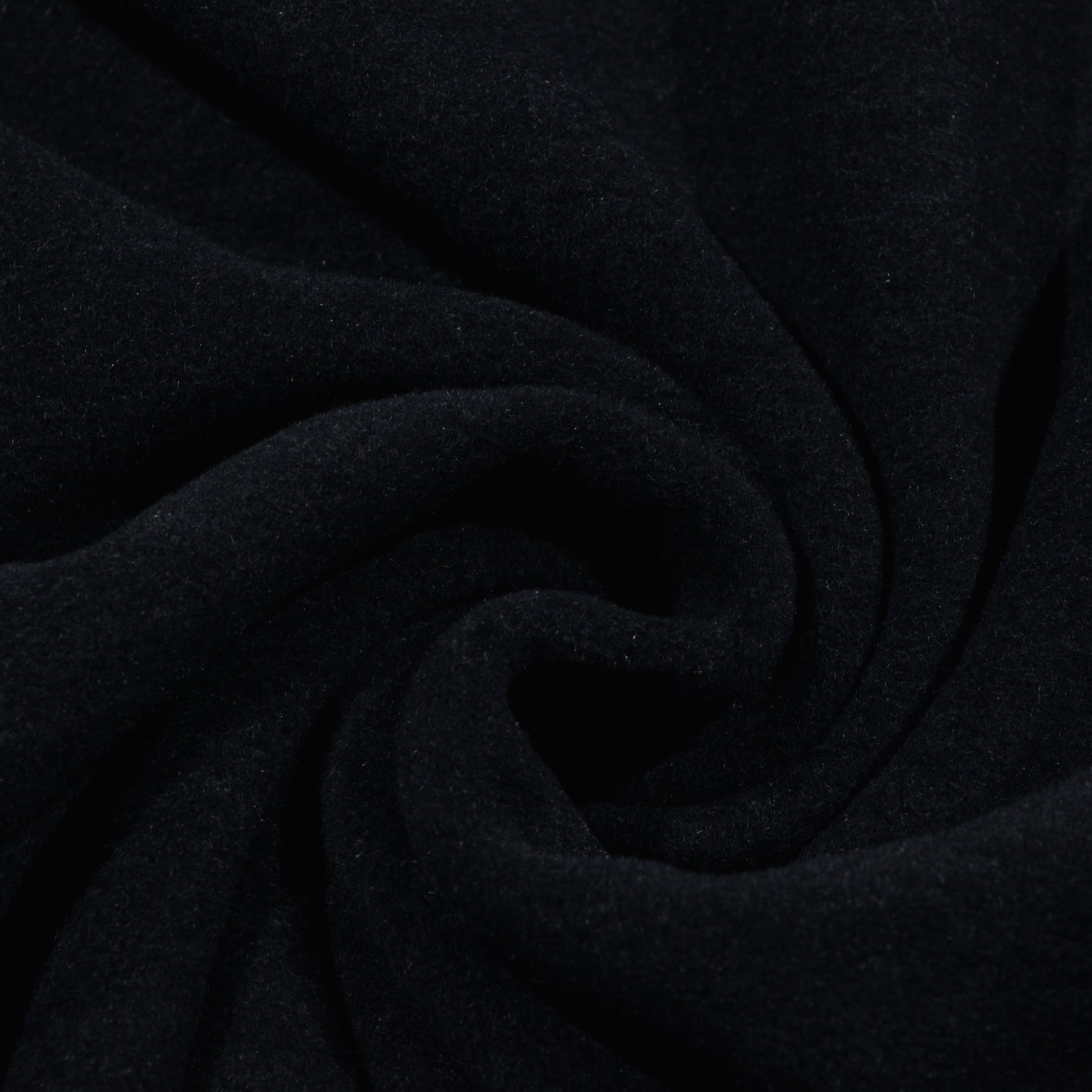 Dieser hochwertige Stoff besteht aus ca. 20 % feiner Merinowolle und 80 % Polyamid – eine perfekte Kombination aus natürlicher Wärme, edler Haptik und hoher Formstabilität. Die Oberfläche ist angenehm soft und leicht flauschig, ohne zu voluminös zu wirken. Optisch matt, elegant und tiefschwarz – ideal für minimalistische, zeitlose und hochwertige Mode.