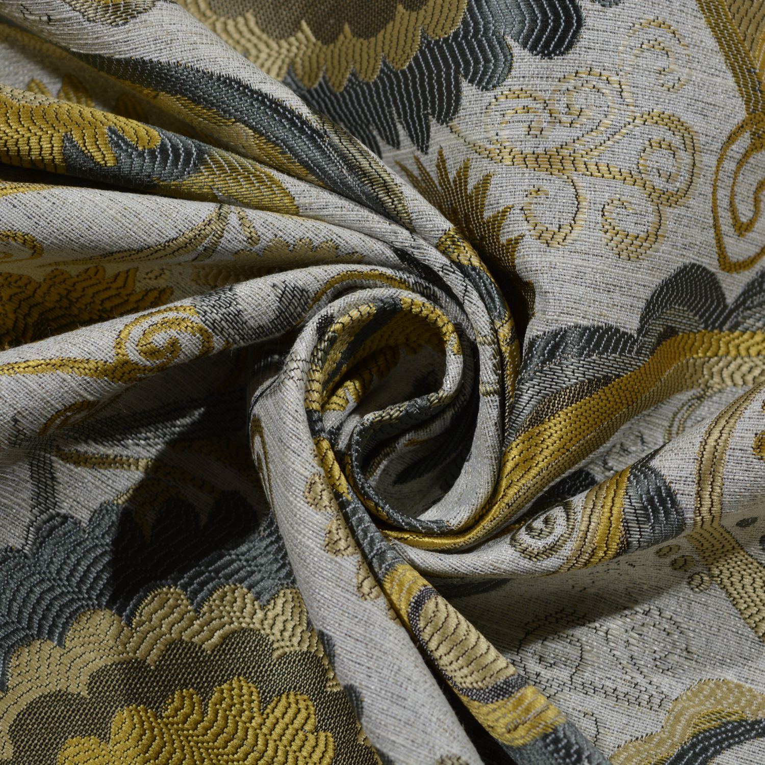 Jacquard Möbelstoff – florales Ornamentdesign in Gelb- und Grautönen
