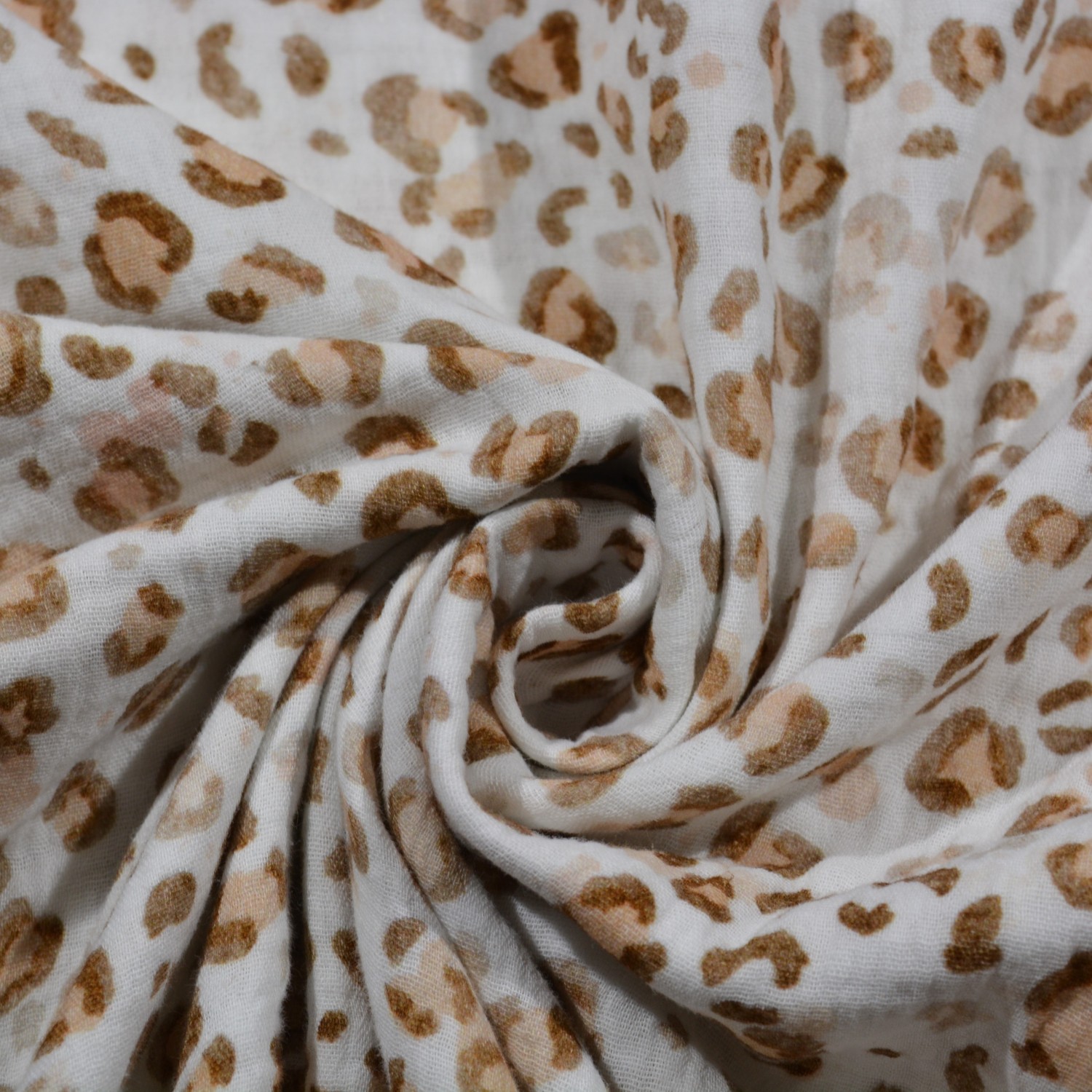 Musselin „Elvira“ – leichter Baumwollstoff mit Leo-Print in Beige & Weiß