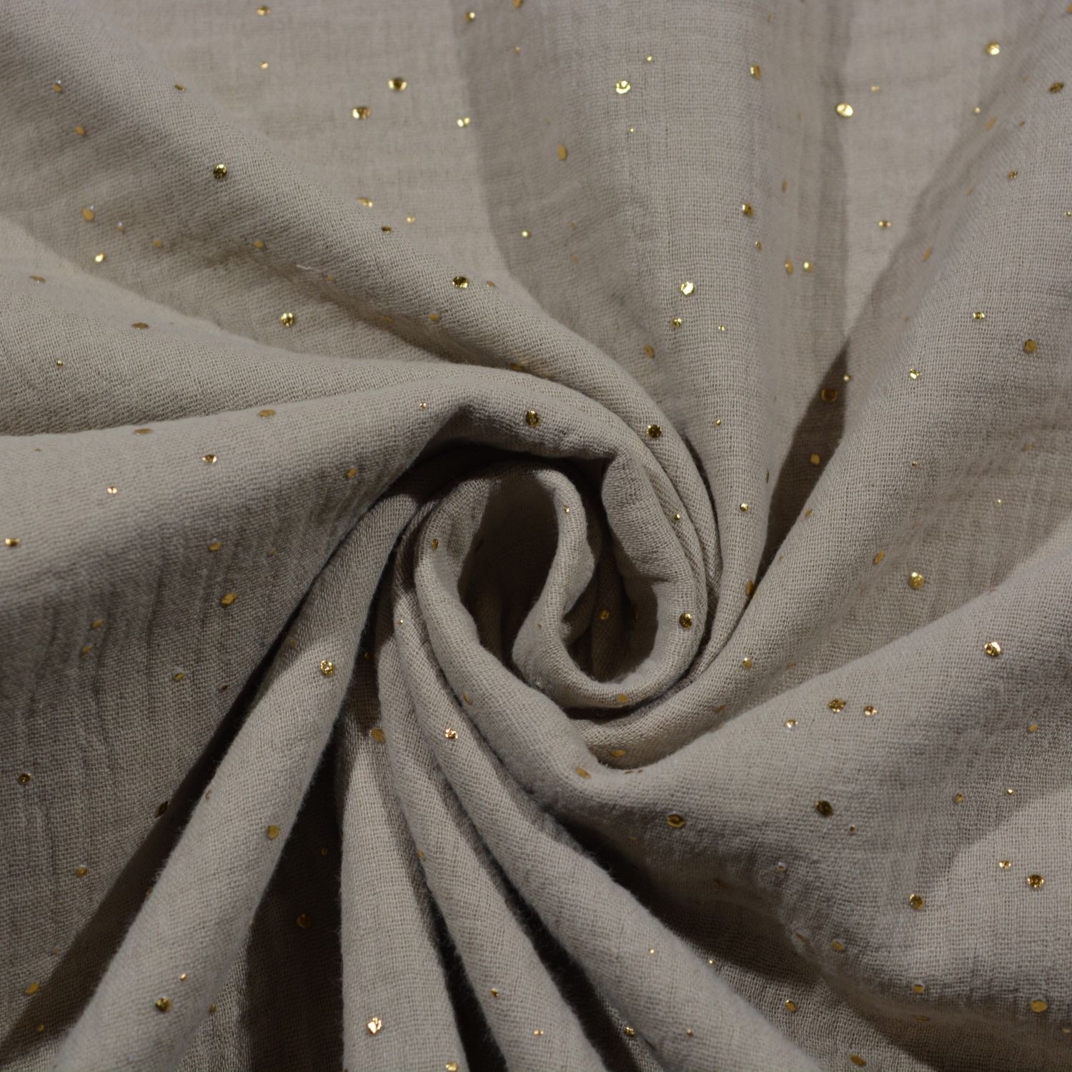 Musselin „Goldpunkte“ – luftiger Baumwollstoff mit edlem Glanz