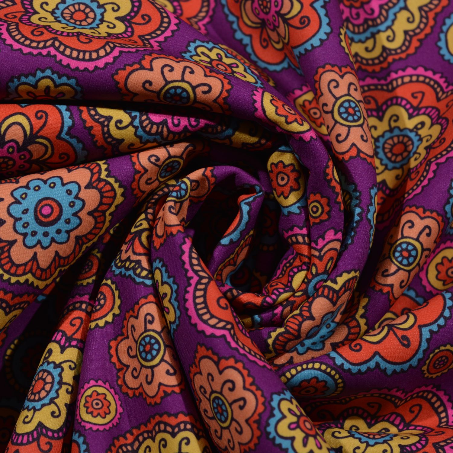 Dieser hochwertige Softshell-Stoff begeistert mit einem lebendigen Blumenornament-Design in intensiven Farben auf kräftigem Untergrund. Die detailreichen floralen Motive verleihen dem Stoff eine besondere Ausstrahlung und machen ihn zu einem echten Hingucker für individuelle Nähprojekte.