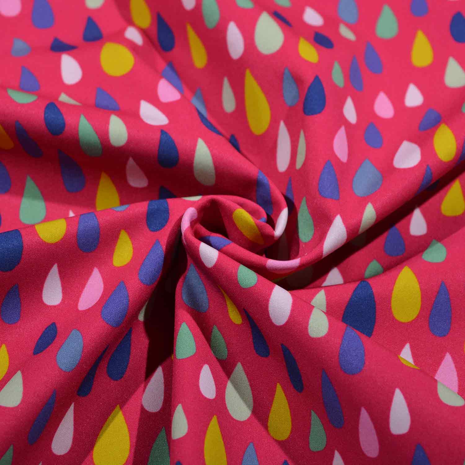 Altrosa Softshell mit einem Aufdruck von glänzenden Wassertropfen in verschiedenen Größen, die mit einem tollen 3D-Effekt versehen sind und daher recht realistisch aussehen.Die flauschige Abseite des Stoffs ist ebenfalls altrosa getönt.Dieses Dessin gibt es noch in weiteren Farben.