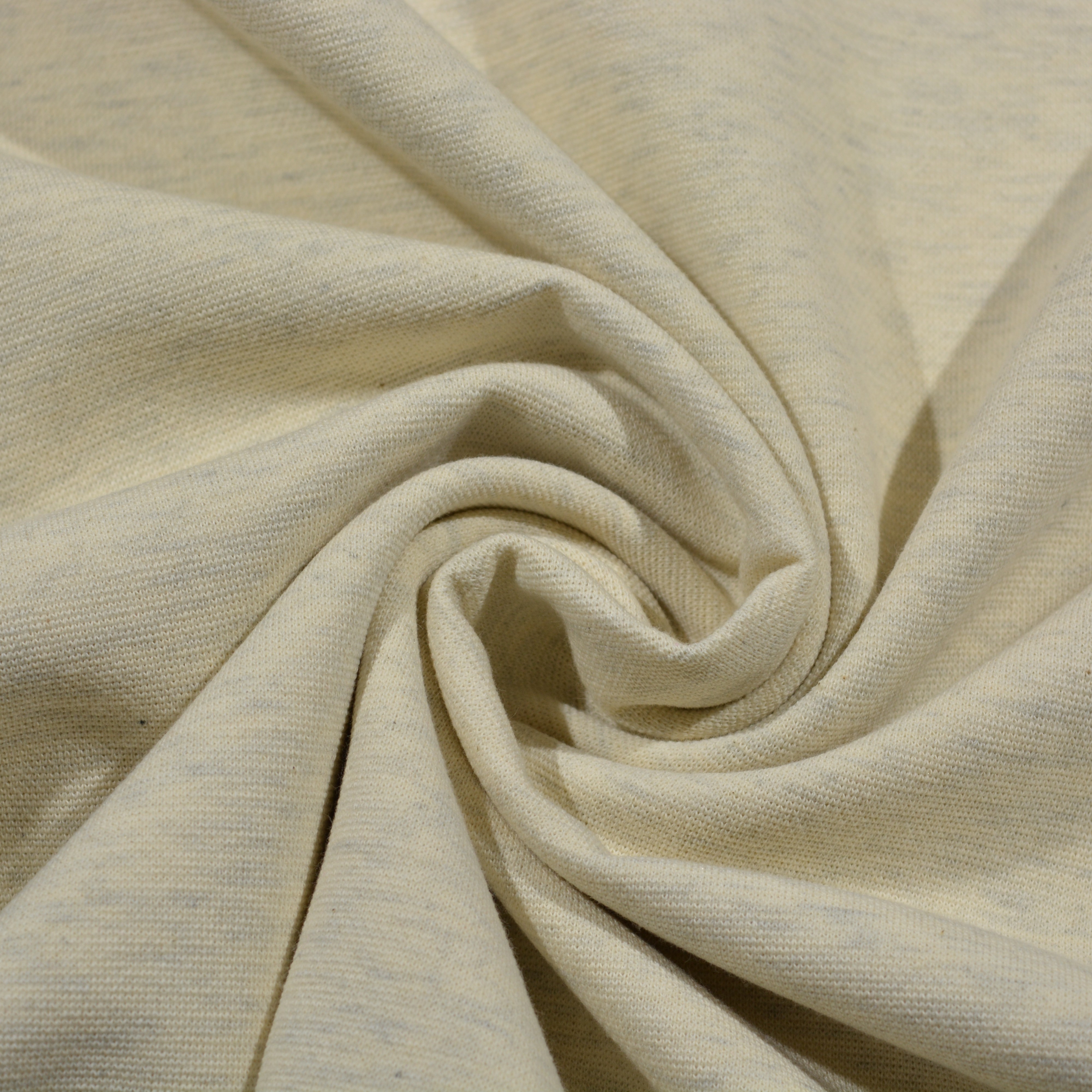 Der Strickstoff „Melange Natur“ ist ein hochwertiger, schwerer Strickstoff mit angenehm weichem Griff und hervorragendem Tragekomfort. Durch seinen Materialmix aus Baumwolle, Polyamid und Elasthan bietet er eine ideale Kombination aus Stabilität, Elastizität und Komfort.