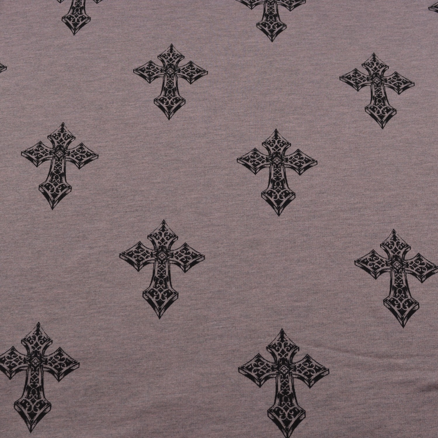 Sweatstoff „GothicCross“ – Baumwollmischung mit Kreuz-Motiv